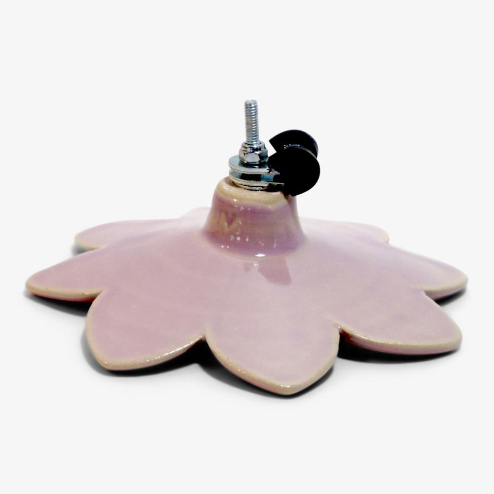 Blomman är handdrejad i stengods, som målats och skurits ut förhand. Blomman är väldigt dekorativ och hängs enkelt upp med det monterade klämfästet. Det flexibla klämfästet gör att möjligheterna för placering blir många och med lite kreativitet kan man enkelt skapa en mängd olika installationer med dessa blommor. Ett tips är att göra en spaljé med ett armeringsnät!
