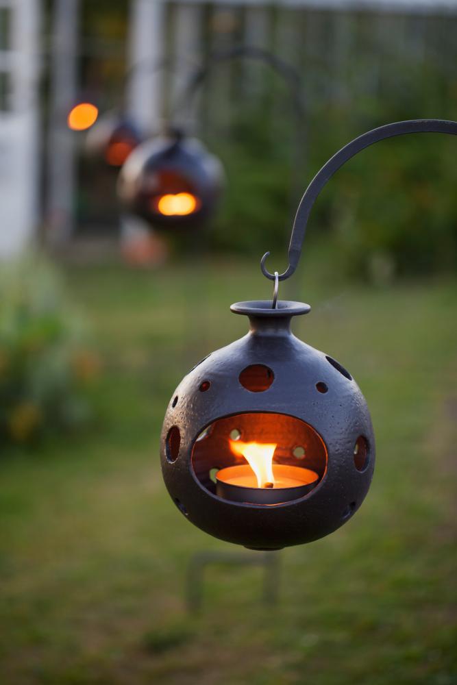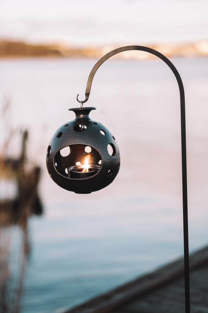 Våra marschallklot har blivit en stor favorit hos både privatpersoner och den offentliga sektorn. Denna marschall-lykta är inte bara välkomnande utan en pampig detalj för din trädgård. Marschaller är något som ständigt ökar i användande, med anledning av att det är ett enkelt sätt att sprida stämning vid trädgårdsfester och bjudningar. Med sin handsmidda smideskäpp skapar den många möjligheter för placering, då den endast kräver en bit mark för att placeras. Detta görs enkelt med ett fottramp ner i marken. Ett bra alternativ om man inte vill använda marschaller är att lägga i en elljusslinga istället.