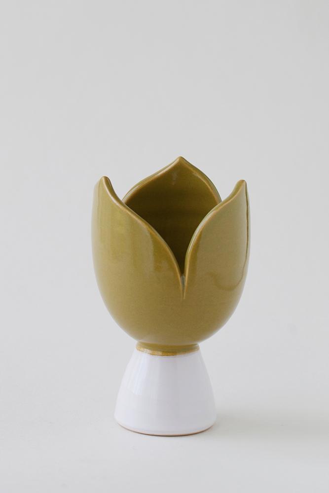 Tulpanljusstaken har en elegant form som med fördel även kan användas som vas. Formen framtogs på 90-talet och är nu tillbaka i en ny tappning med trendiga färger. Ljusstaken är tillverkad i keramik som hand drejats och skurits ut för hand vilket gör varje ljusstake unik. Finns i 3 storlekar samt i flera olika färger.
