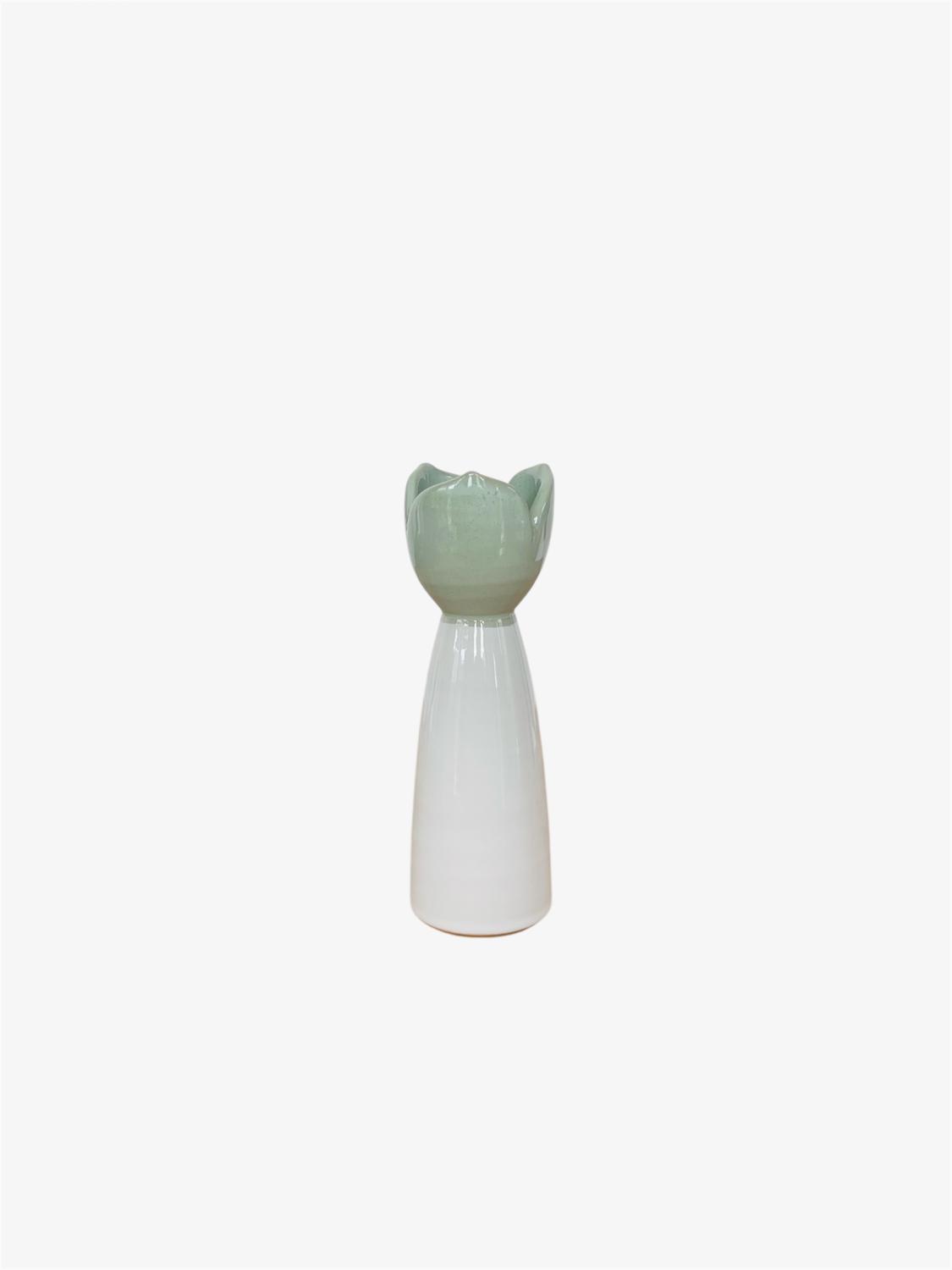 Sandvik Tulpanljusstake mellan 19cm, vit/mintgrön